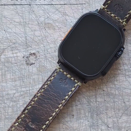 This leather Apple Watch band is carefully handcrafted—cut, punched, and sewn with great attention to detail. It features premium full-grain leather with a rich texture and hand-sewn saddle stitching, ensuring both style and durability.