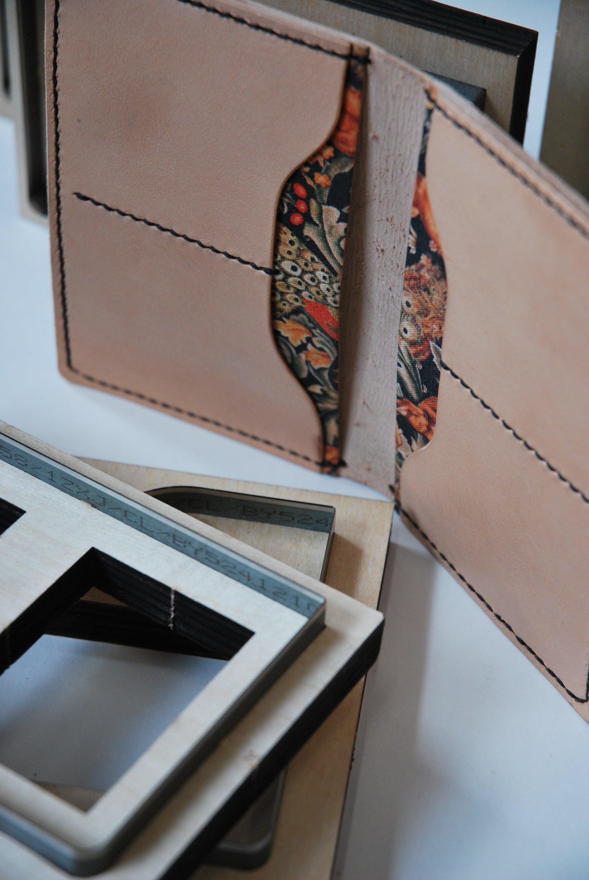 This cutting die is designed for making an organizer wallet with a clean, professional finish. Once assembled, the wallet is spacious enough to hold a passport, auto registration papers, or other important documents, while still offering room for cards and cash.